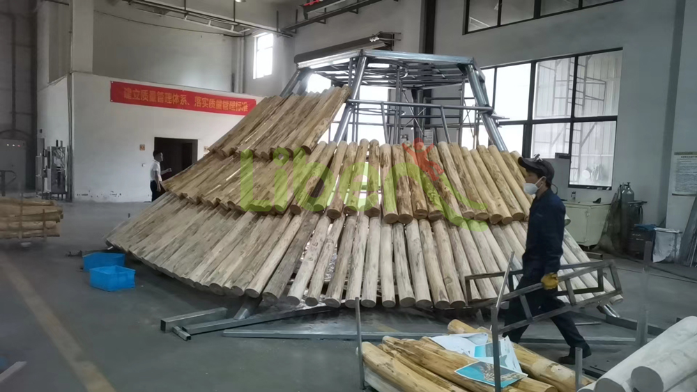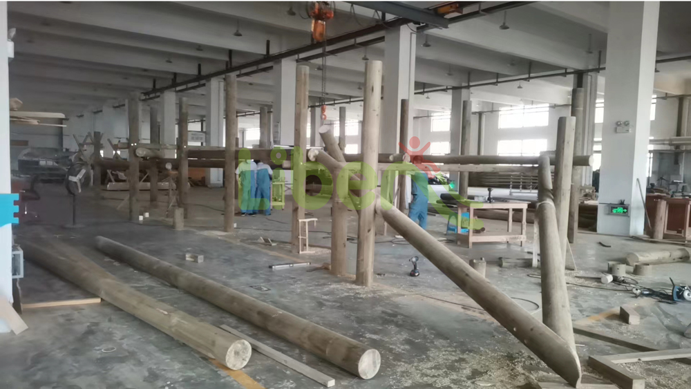 項目進入生產(chǎn)階段,這個項目用到的大量原材料為實木木材,且規(guī)格很大,公司立即派遣專員去原材料廠家嚴格篩選木材,上圖中立本集團車間員工正在給木材打磨,拋光,試搭,我們的木材都要經(jīng)過打磨,拋光后,再進行三次上漆,兩次底漆一次面漆,保證顏色上色均勻,達到防蟲防腐效果。