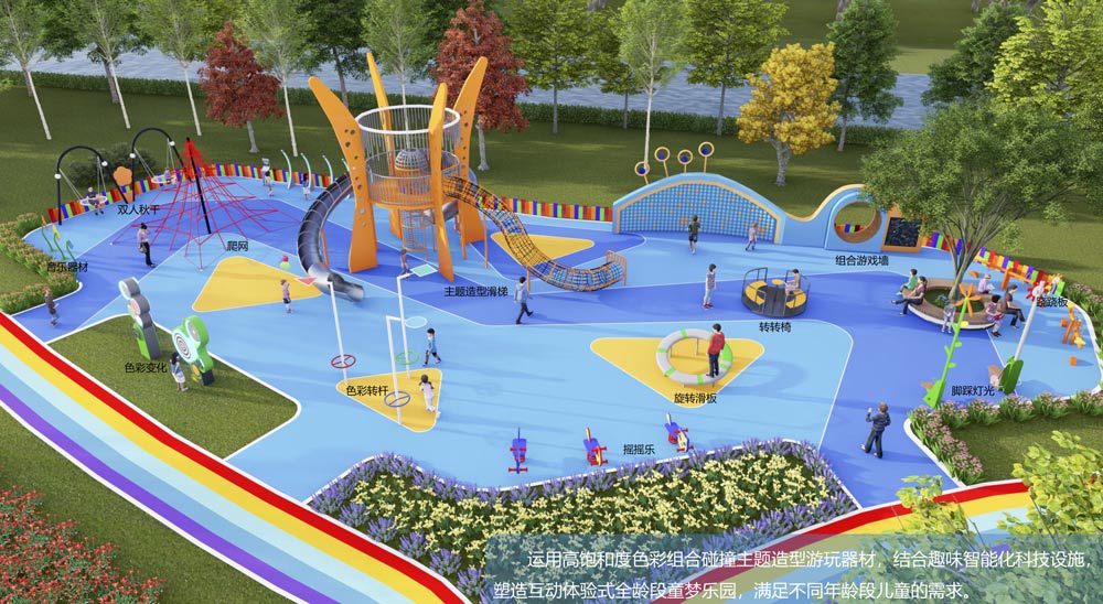 設(shè)施特點(diǎn):運(yùn)用高飽和度色彩組合碰撞主題造型游玩設(shè)施,結(jié)合趣味智能化科技設(shè)施,塑造互動體驗(yàn)式全齡段童夢樂園,滿足不同年齡段兒童的需求;融匯攀爬、搖晃、彈跳、平衡等功能,色彩豐富,互動墻上涂鴉、翻翻樂等功能,做到,功能一應(yīng)俱全;加載了秋千、搖搖樂、爬網(wǎng)、轉(zhuǎn)椅、滑梯等游樂設(shè)施,塑造互動體驗(yàn)式全齡段童夢樂園,做到了視覺、聽覺、觸覺上的全面感受,讓孩童在不同的用途上,都能找到對應(yīng)的游樂設(shè)備,可以滿足不同年齡段兒童的需求。