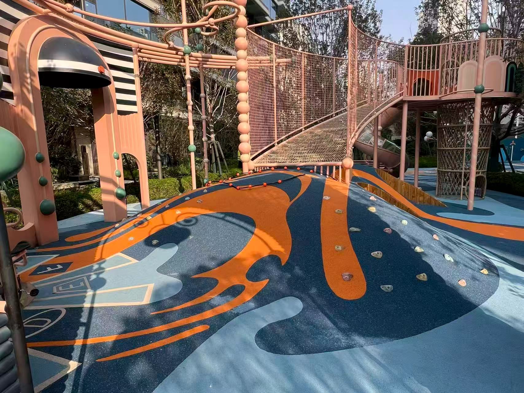 全園采用 3cm 厚 EPDM 彈性地面,抗沖擊強(qiáng)度超國(guó)標(biāo) 2 倍,降低跌落傷害風(fēng)險(xiǎn)