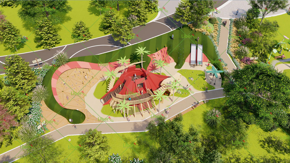 其中戶外無動力親子游樂區(qū)域是立本重點打造區(qū)域,以恐龍為主題,由快樂島、翼龍穿梭、延吉龍、火山巖四大區(qū)域組成。