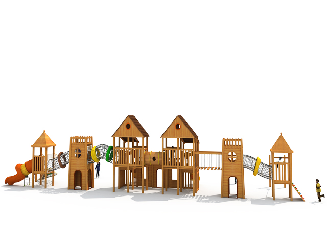 這類游樂設(shè)施主要依據(jù)于戶外拓展游樂項(xiàng)目為原型,可以建造于戶外的大型拓展游樂園當(dāng)中,通常是結(jié)合于緣木生態(tài)為主題進(jìn)行了攀爬,跳躍,鉆洞等不同動(dòng)作要領(lǐng)上的規(guī)劃項(xiàng)目。同時(shí)森林拓展木質(zhì)組合滑梯在景觀上的打造都是屬于比較規(guī)整的,原木上的使用材質(zhì)要求為紋理比較清晰,顏色更符合于大自然。