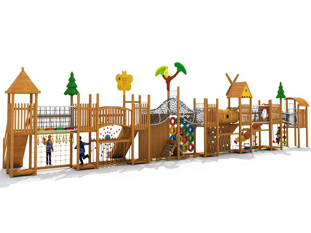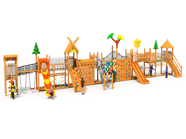 木質滑梯:木質系列的組合滑梯或者是單項滑梯都是以木質結構為主題,因此這也就要求到了木質滑梯的每一個組合的部件制造工藝的高要求,我們采用的是進口非洲柚木制成,并且在對木材進行雕塑的過程當中會對木材進行多重的復雜工藝處理,使得木材脫水碳化,能夠讓實木組合滑梯防火防霉的功能。除此之外,因為木質滑梯的使用人群為孩子,所以在成型之后對于造型表面的要求也是頗高的。必須要在制作成型之后對表面進行特殊處理,光滑無毛刺,游樂趣味性強。