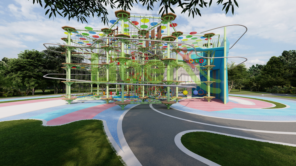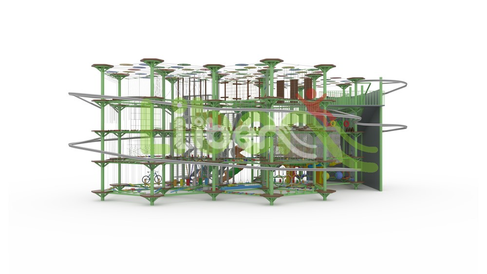 勇氣之塔是以戶外拓展訓(xùn)練器材為主要元素,以拓展訓(xùn)練項(xiàng)目為基礎(chǔ)開發(fā)的適用于景區(qū)游樂活動(dòng)的探險(xiǎn)游樂設(shè)備,探險(xiǎn)樂園設(shè)備經(jīng)嚴(yán)密科學(xué)設(shè)計(jì)進(jìn)行裝配,由多個(gè)直線結(jié)構(gòu)金屬平臺(tái)組合而成,每個(gè)平臺(tái)之間由各種金屬支撐桿或者繩索連接,平臺(tái)之間不同步道的組合相互搭配,使得攀爬、跨越及空中行走更加多樣化,充滿了趣味性和娛樂性。探險(xiǎn)樂園可靠的安全設(shè)計(jì),使參與其中的 游客無后顧之憂,可以放心大膽的投入其中。