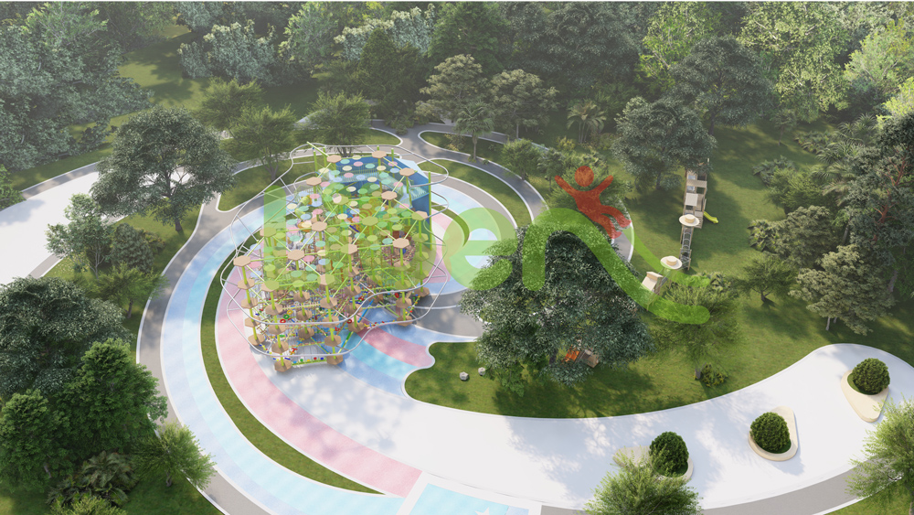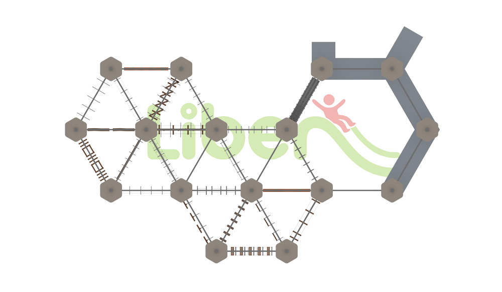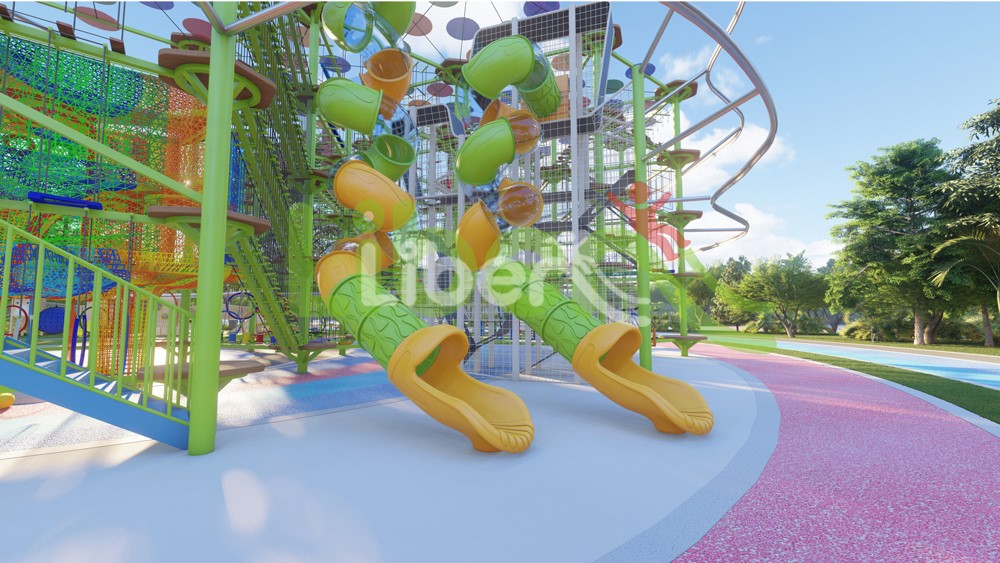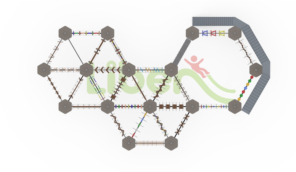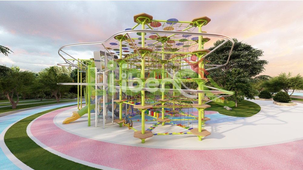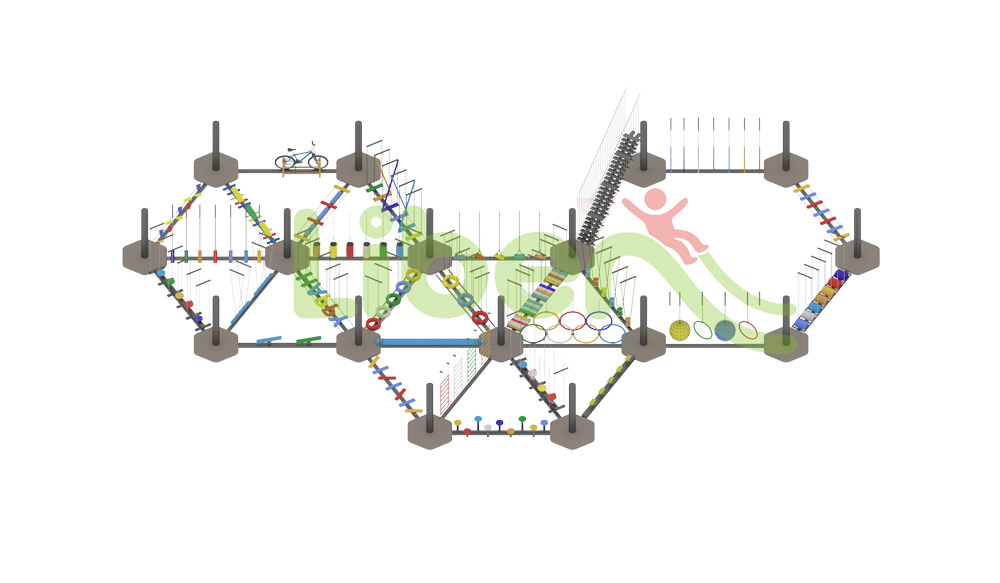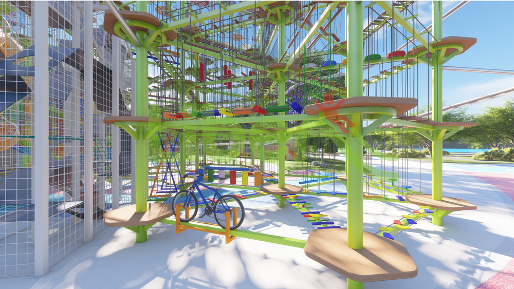 無動(dòng)力高空拓展設(shè)施,共有105個(gè)關(guān)卡。星空探索主題軟性攀爬“宇宙探索空間”,雙螺旋高空滑道。莫比烏斯環(huán)迷宮爬網(wǎng),象征意義是奉獻(xiàn)、團(tuán)結(jié)、責(zé)任、奮進(jìn)、勇敢、勇氣。