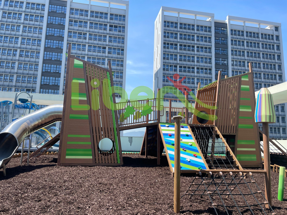 立本木質(zhì)小博士系列室外組合滑梯參考?xì)W美流行款式,結(jié)合國(guó)內(nèi)市場(chǎng)的特點(diǎn),巧妙的將跑、鉆、爬、攀、滑、翻、滾等功能性動(dòng)作溶于兒童戶(hù)外滑梯之中,既鍛煉了孩子們的平衡、獨(dú)立協(xié)調(diào)和創(chuàng)造能力,也有利于孩子們的自我保護(hù)意識(shí)。