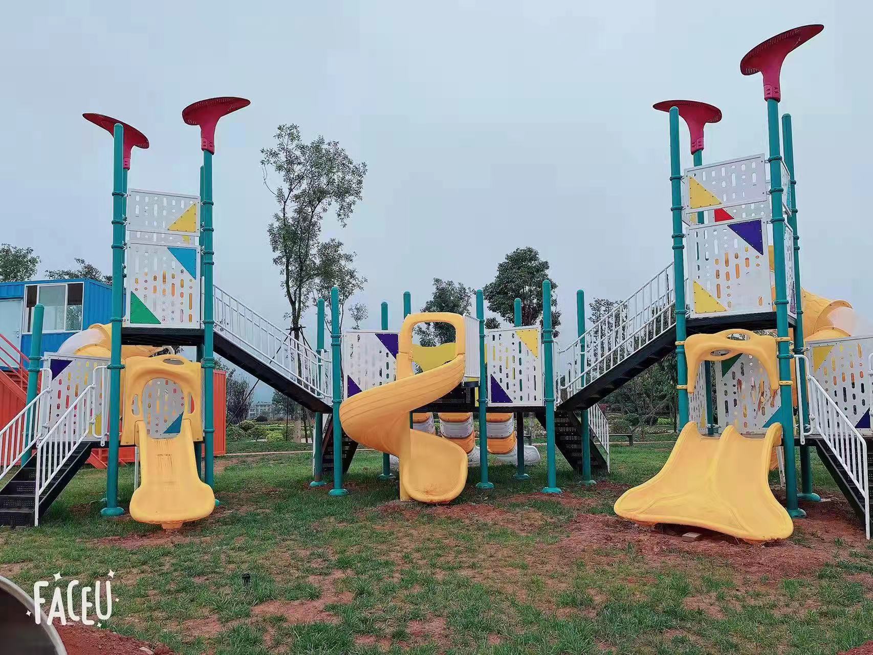 第四、兒童組合滑梯是由門牌、過橋、滑筒、頂子、爬梯、扶手、臺(tái)板、立柱、滑梯、攀爬管、和繩網(wǎng)等構(gòu)成的組合滑梯,在尺寸上是遵循了人體工程學(xué)原理,與人體的高度配合,與兒童年齡和體型結(jié)合,才能有益于他們的健康成長。如果是戶外滑滑梯的話,一般選用6米左右的。因?yàn)榭臻g大,樣式相對(duì)比室內(nèi)的滑梯更多。